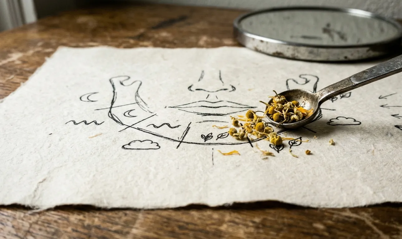 Prepararea unui ceai de mentă sau mușețel seara pentru relaxare.