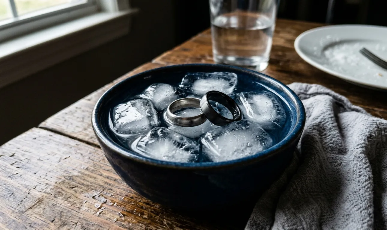 În loc să se panicheze sau să încerce să scoată inelul cu săpun, mulți oameni folosesc metoda temperaturii. Aceasta necesită cele mai comune articole din bucătărie.