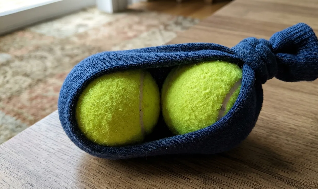 Luați două mingi de tenis moderat tare
