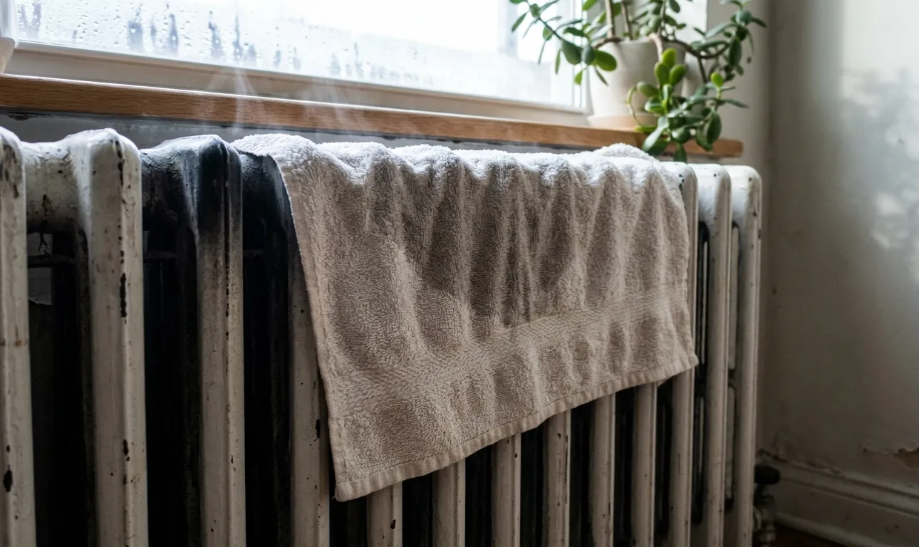 Experiența mea personală arată că un prosop gros obișnuit de terry umed aruncat pe un calorifer fierbinte înainte de a merge la culcare salvează perfect situația până dimineața.