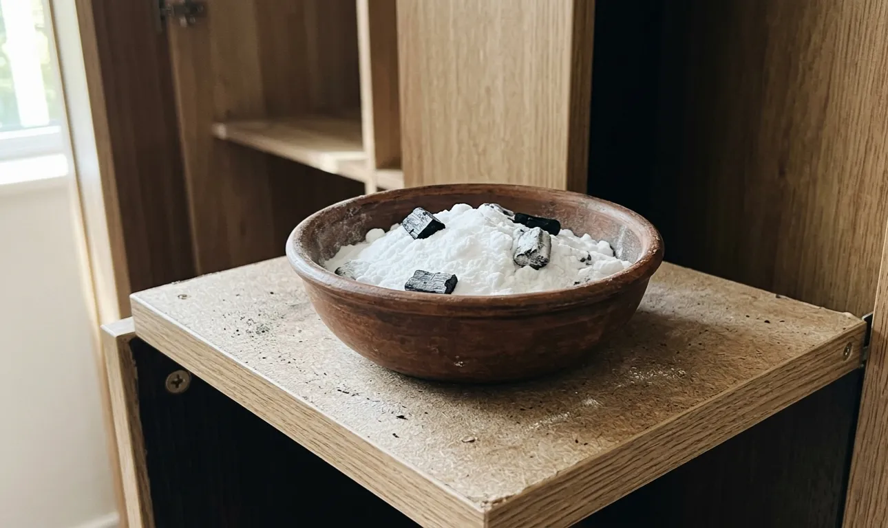 Puneți farfurii cu bicarbonat de sodiu în colțurile camerei și în interiorul dulapurilor