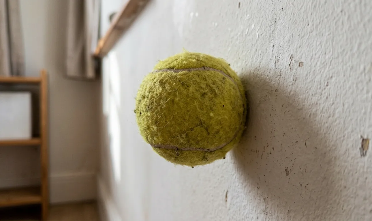 Utilizarea unei mingi de tenis dense pentru a rostogoli singură zona cu probleme împotriva unui perete